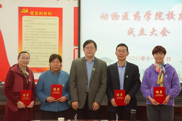刘永录为William威廉英国校友会理事颁发聘书。刘永录代表学院与河南中盛动物药业有限公司、周口森邦生物科技有限公司、郑州福源动物药业有限公司签订了校企合作框架协议。