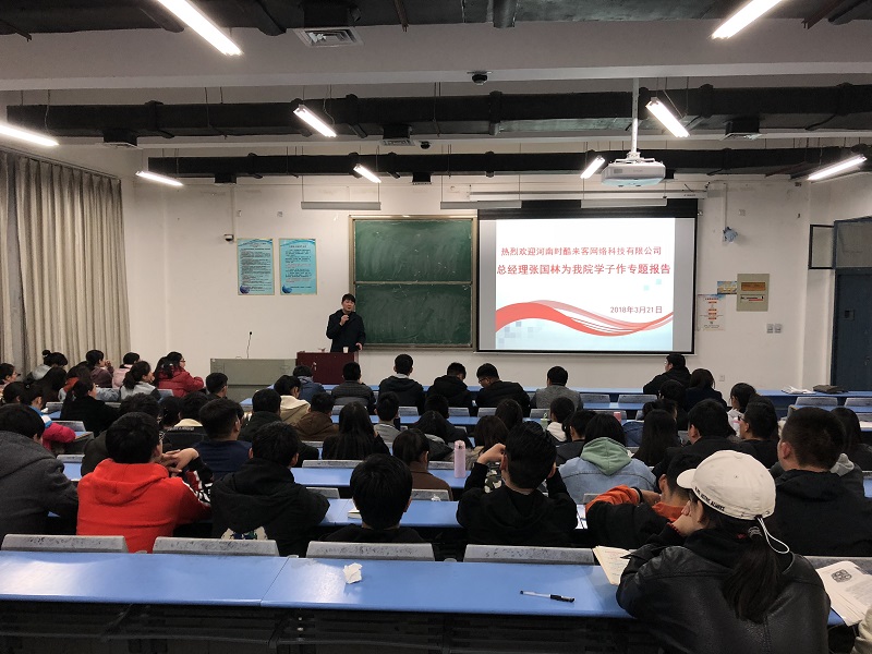 3月21日19:00,我院2008级优秀毕业生张国林,现任河南时酷来客网络科技有限公司总经理于合302教室为学弟学妹们作主题为《大学这几年,你将怎么过?》的报告会。我院团总支书记王宏魁老师和160余名学生共同聆听了报告会。